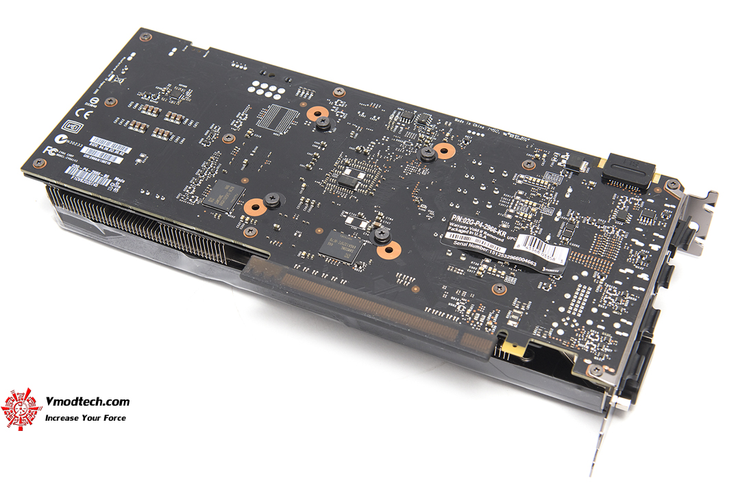 ตัวการ์ดรวมฮีทซิ้งค์นั้นมีขนาดประมาณสองสล๊อด บริเวณสันการ์ดครับ ต้องการไฟจากหัว PCIe แบบ 8 พินหนึ่งหัว