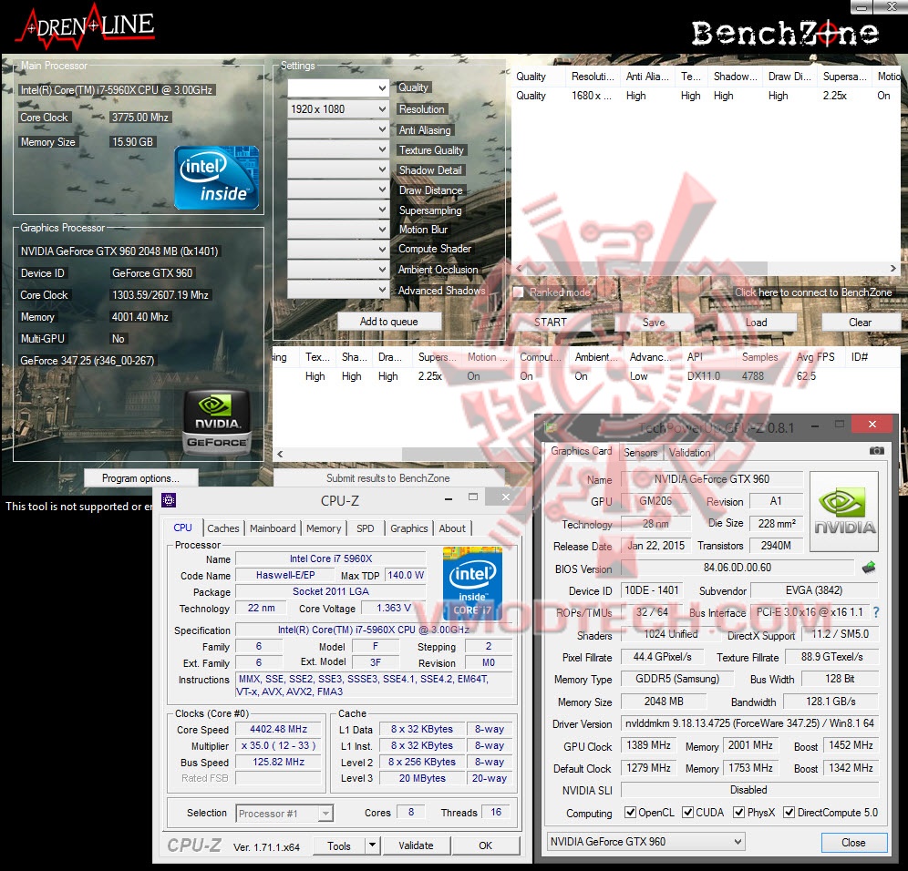 EVGA GeForce GTX 960 SuperSC ACX 2.0+ Overclock @ 1389/2001/1452 MHz Core/Mem/Boost