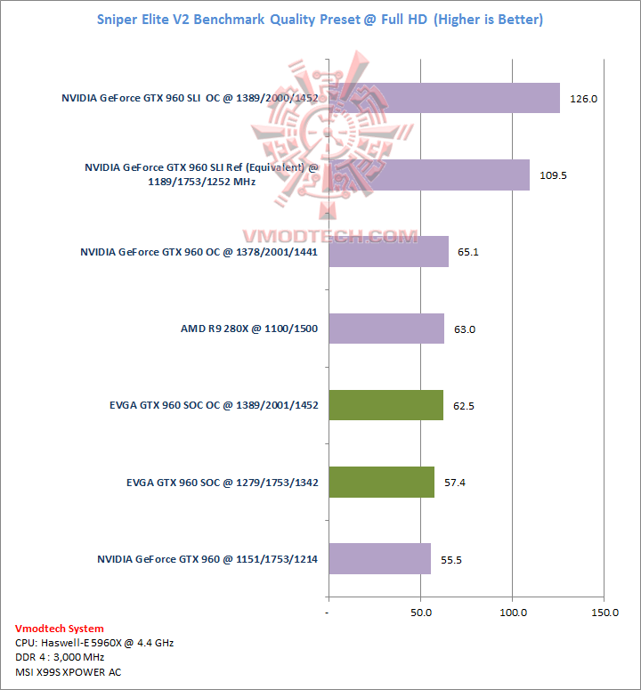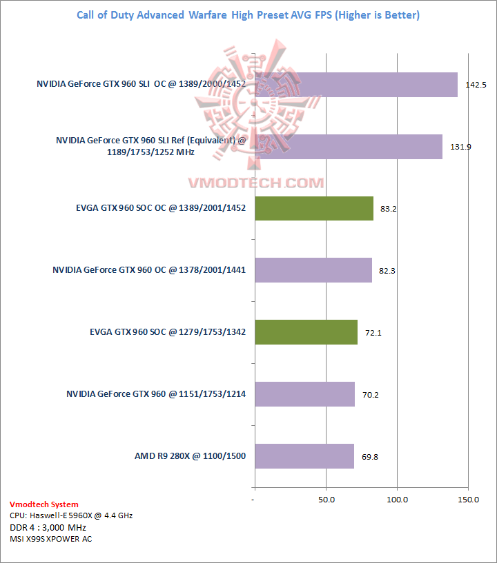 GTX 960 นั้นมีพลังที่จะขับเคลื่อนเกมส์ดังๆเหล่านั้นได้เป็นอย่างดีที่เฟรมเรทเฉลี่ย 60 เฟรมต่อนาที ซึ่งถ้ามองกันตรงๆคือมากกว่า GTX 660 ที่ได้เพียงไม่เกิน 40 เฟรม เมื่อเปรียบเทียบ GTX 960 กับ GTX 660 นั้นจะเห็นได้ว่า GTX 960 นั้นมีการพัฒนาต่อยอดได้อย่างสมบูรณ์แบบ เพียบพร้อมไปด้วยคุณสมบัติพิเศษๆเช่น VXGI และ MFAA ซึ่งถือว่าเป็นเทคโนโลยีลบรอยหยักของเจนเนอร์เรชั่นต่อไปซึ่งจะพบได้บน DirectX ตัวที่กำลังเปิดตัวจาก Microsoft