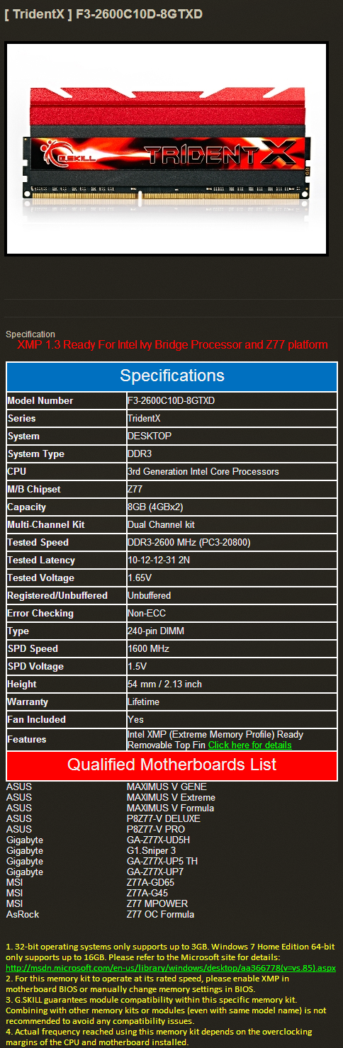 ![spec spec G.SKILL [TridentX] F3 2600C10D 8GTXD DDR3 2600MHz CL10 8GB Kit Review](http://www.vmodtech.com/main/wp-content/uploads/2012/12/27/g-skill-tridentx-f3-2600c10d-8gtxd-ddr3-2600mhz-cl10-8gb-kit-review/spec.png)