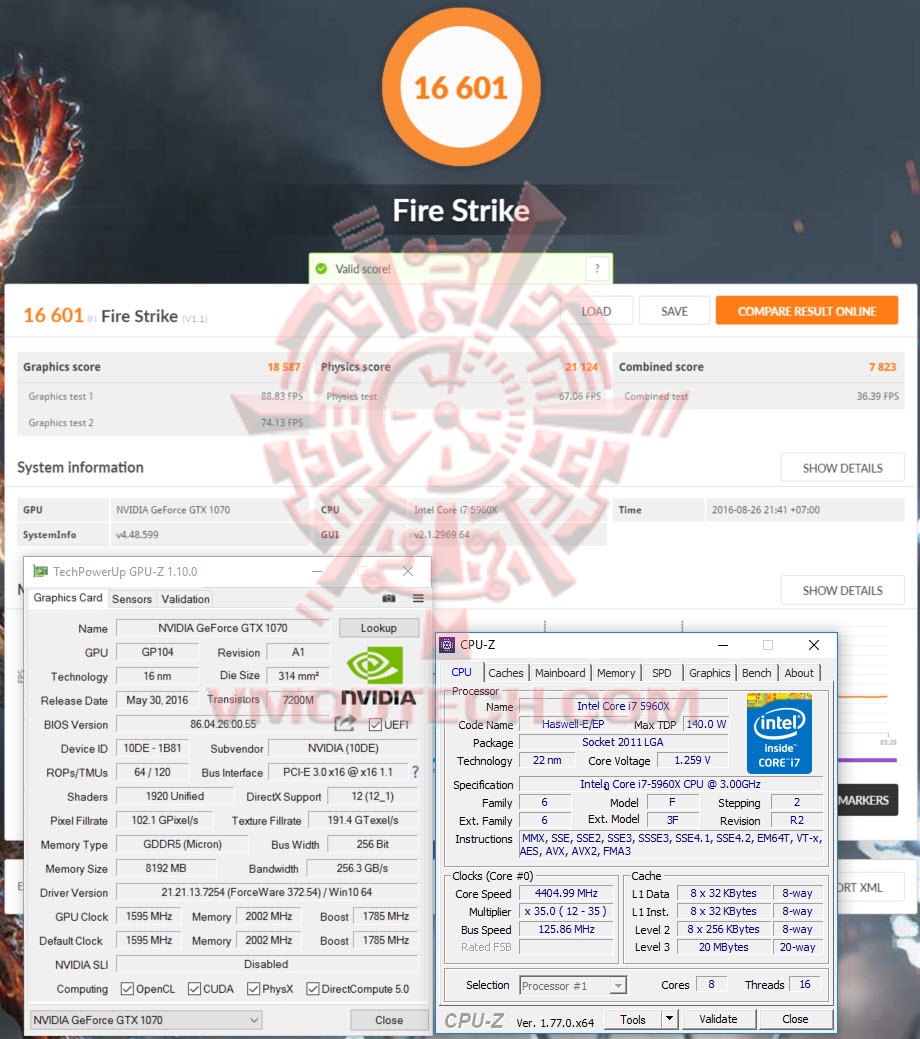 GALAX GeForce GTX 1070 EXOC @ 1595/2002/1785 MHz Core/Mem/Boost