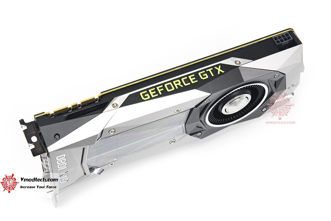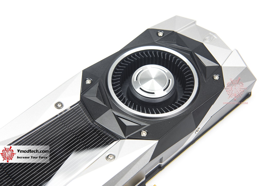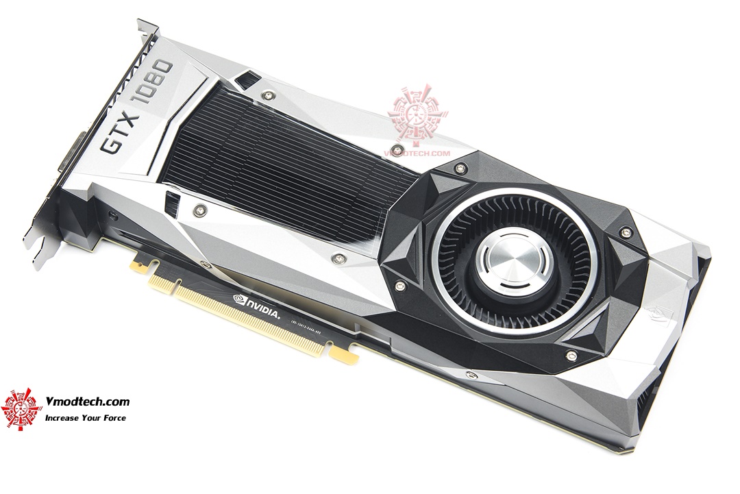 โลโก้ GTX 1080 อีกด้านนึงของตัวการ์ดครับ เช่นเดียวกับด้านท้ายการ์ด ฝาครอบชุดระบายความร้อนของ 1080 นั้นขึ้นลายไว้อย่างสวยงาม