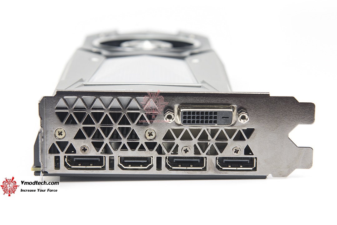 อินตอร์เฟสด้านหลังมีอยู่ 5ช่องคือ 1 X DVI , 1 x HDMI , 3 x DisplayPort DisplayPort 1.2 certified, DP 1.3/1.4 Ready