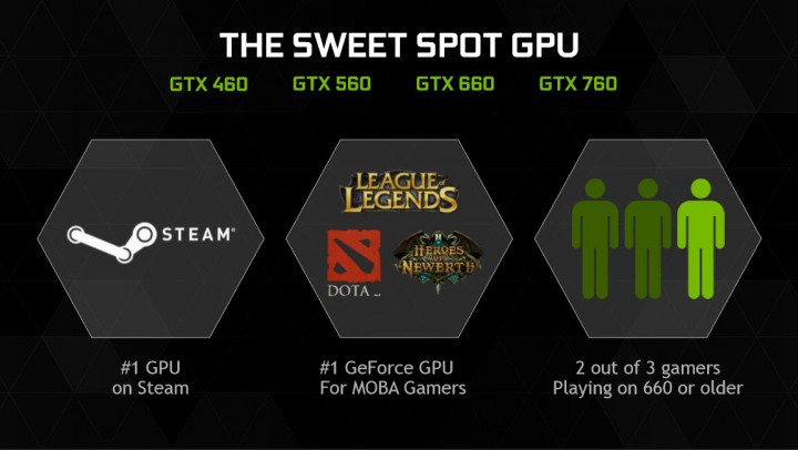 จากการสำรวจนั้น GTX 660 นั้นมีจำนวนผู้ใช้งานอยู่มากที่สุดบน Multiplayer Onlinee Battle Arena ซึ่ง GTX 660 นั้นสามารถรองรับเกมส์ดังๆอย่าง Newerth, League of Legends, DOTA2 ได้เป็นอย่างดี