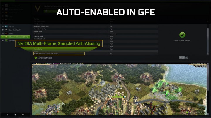 สำหรับคอเกมส์ที่ไม่สันทัดในการปรับแต่งค่าต่างๆในเกมส์ NVIDIA GeForce Experience นั้นก็ต่อยอดให้สามารถปรับแต่งเกมส์ต่างๆได้อย่างอัตโนมัติเพื่อให้คอเกมส์สั้นได้สัมผัสกับอารมณ์ลื่นไหลเมื่อเล่นเกมส์แต่ยังคงความสมบูรณ์ของภาพและเอฟเฟกต่างๆที่บรรดาผู้สร้างนั้นบรรจงรังสรรเข้าไว้ในเกมส์
