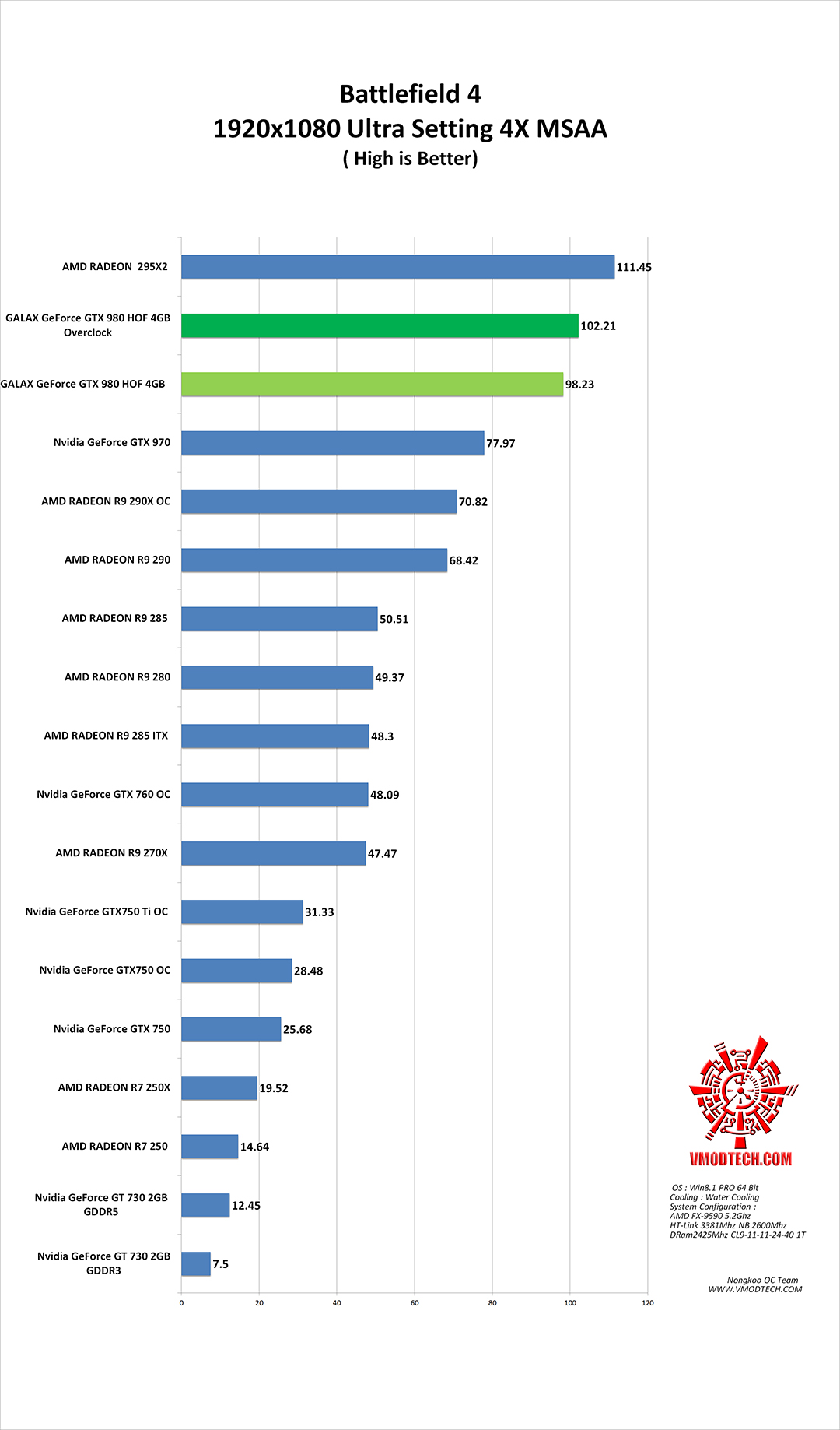 Battlefield 4™ คือเกมแอ็คชันสุดฮิตที่ขึ้นชื่อเรื่องการทำลายที่ไร้คู่แข่ง ด้วยพลังขับเคลื่อนและความสมจริงของเอนจินยุคต่อไปอย่าง Frostbite™ 3 ซึ่งตัวเกมส์เน้นการเล่นออนไลน์เป็นหลักรวมไปถึงออฟไลน์ก็สามารถใช้งานได้ดี เช่นกันกับกราฟฟิกที่สวยงามและกินเสปกมากเกมส์หนึ่งเลยทีเดียว โดยการทดสอบของทาง Vmodtech.com ได้ปรับความละเอียดที่ 1920×1080P คุณภาพของภาพอยู่ที่ระดับ Ultra High ครับ