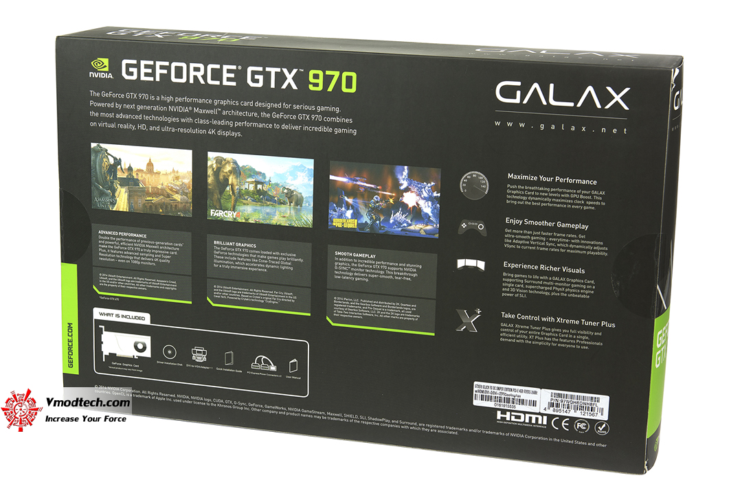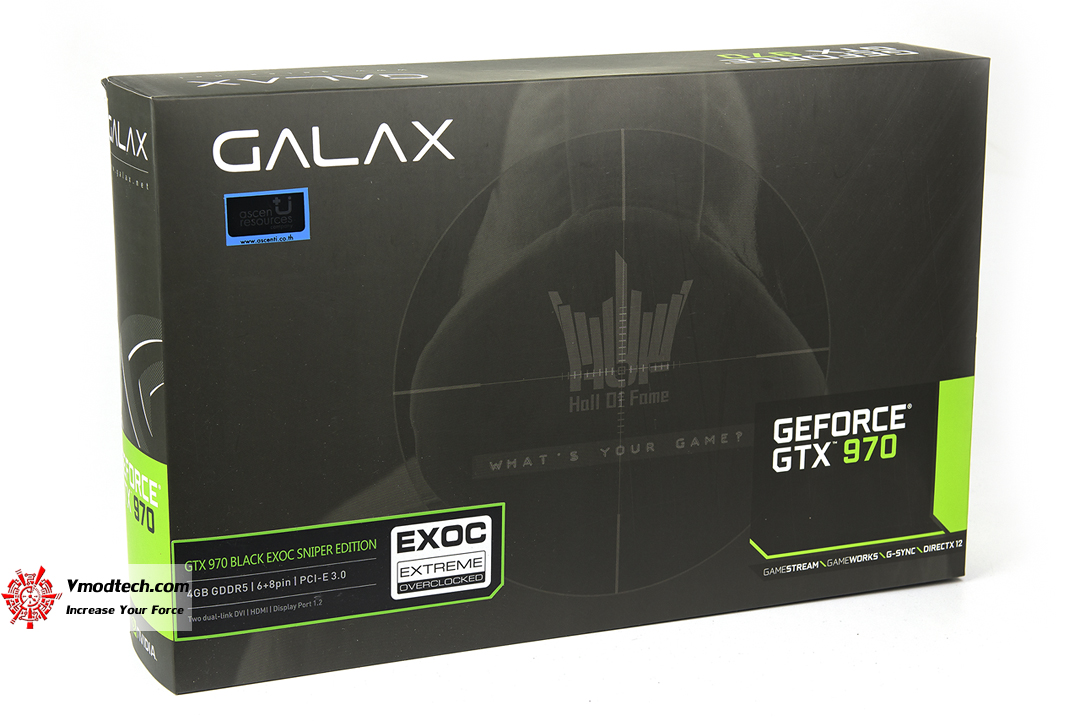 กล่องภายนอกนั้นก็ยังคงเอกลักษณ์ของกราฟฟิกการ์ดจากแบรนด์ GALAX ไว้ได้อย่างลงตัวซึ่งรายละเอียดของ GALAX GTX 970 BLACK EXOC SNIPER EDITION ก็มีแสดงไว้บนทั้งหน้ากล่องและหลังกล่องแล้ว