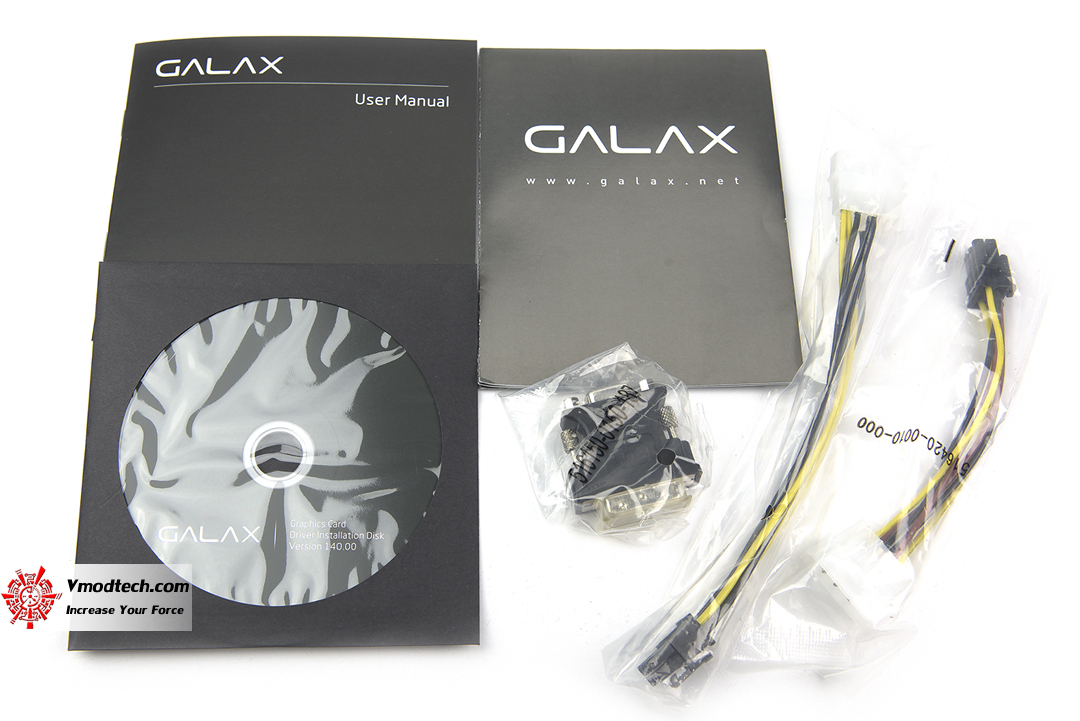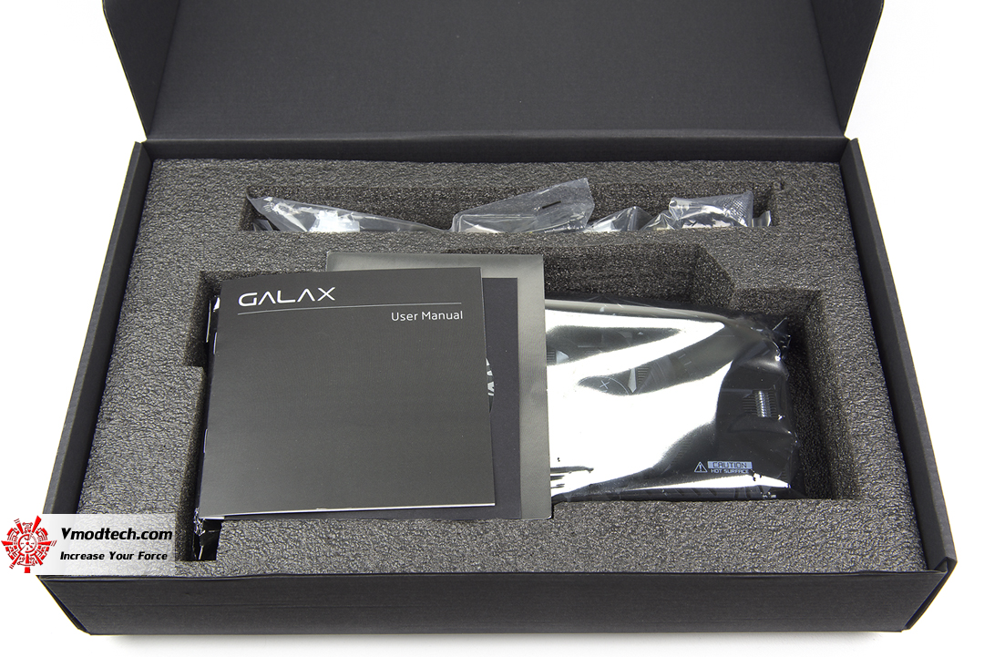 กล่องของ GALAX GTX 970 BLACK EXOC SNIPER EDITION นั้นออกแบบด้วยแพทเทิร์นสีพื้นฐานคือดำแดง ภายในกล่องนั้นก็จะมีคู่มือแผ่นพับ หัวแปลง DVI เป็น D-SUB หนึ่งหัว และหัวแปลงไฟจากโมเร็กเป็น PCIe อีกสองเส้นครับ
