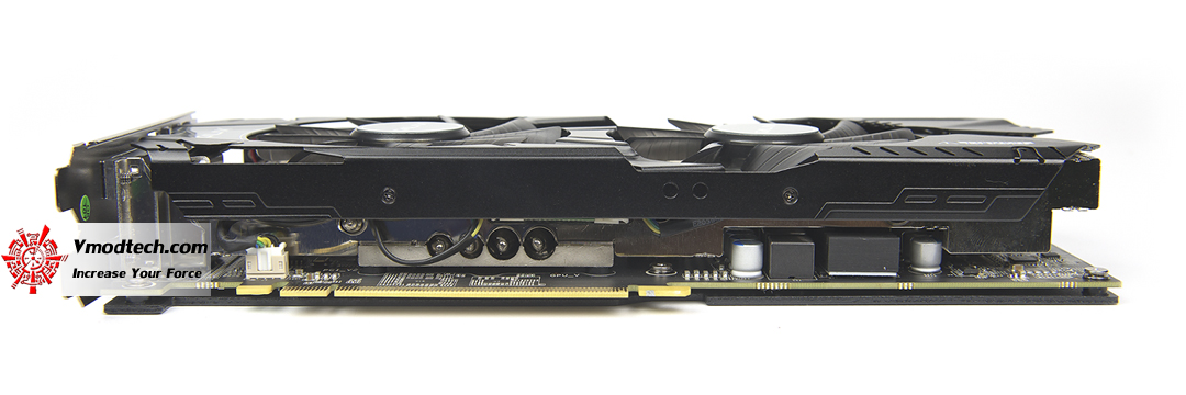 ด้านหลังของการ์ดนั้นมีการติดตั้งแบคเพลทที่มีความสวยงามดุดันและยังช่วยในการป้องกันการแอ่นตัวเมื่อเสียบใช้งานในเคสด้วย