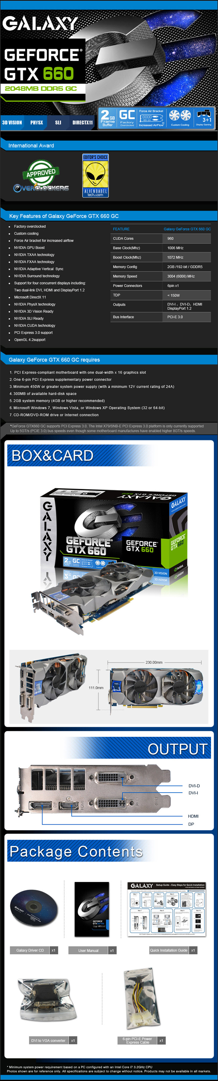 สวัสดีครับ สัปดาห์นี้มาชมรีวิวกราฟฟิกการ์ดจากค่าย NVIDIA กันให้หนำใจกันต่ออีกซักรุ่นนะครับ สำหรับวันนี้หยิบเอา GALAXY GeForce GTX 660 GC 2GB มารีวิวให้ได้ชมกันครับ สำหรับ GTX 660 นั้นถือว่าเป็นกราฟฟิกการ์ดที่น่าสนใจมากอีกรุ่นนึงของ NVIDIA ในยุคปัจจุบัน ด้วยปัจจัยที่ราคาไม่สูงมากนักแต่ก็ได้ประสิทธิภาพมากเพียงพอสำหรับนักเล่นเกมส์ที่ต้องการเล่นด้วยความละเอียระดับ FullHD ได้อย่างลื่นไหล ไม่กระตุกให้เสียอรรถรสในการเล่น เดี๋ยวมาว่ากันต่อครับ