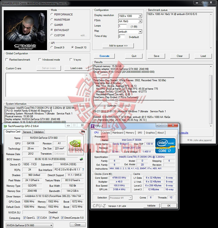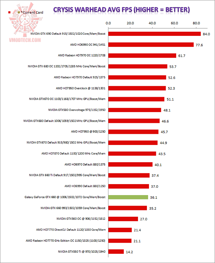 Crysis Warhead นี่เป็น DX10 ซึ่ง GALAXY GeForce GTX 660 GC 2GB นั้นเล่นได้ลื่นไม่มีสะดุดให้กวนใจแน่นอนที่เฟรมเรทประมาณ 36
