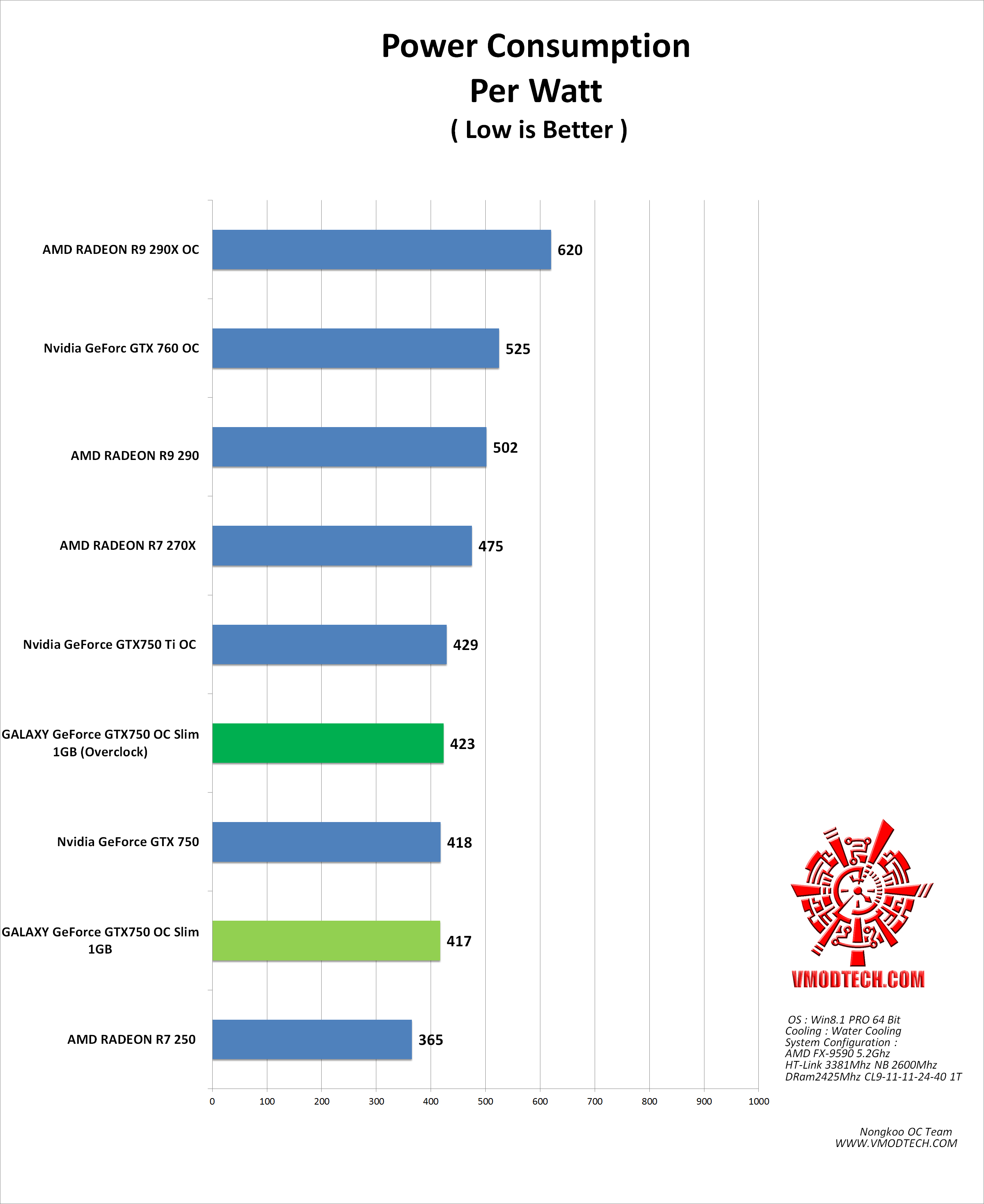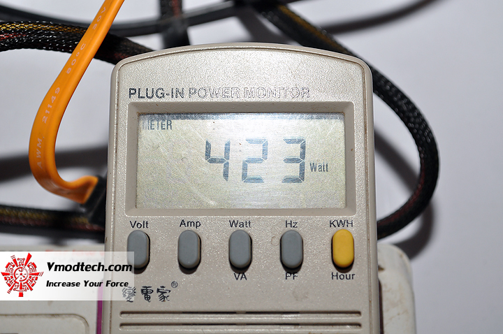 อัตราการบริโภคไฟก็ถือว่าประหยัดมากๆครับ ในสถานะเดิมๆกินไฟที่ 417วัตต์ ส่วนสถานะโอเวอร์คล๊อกเพิ่มไฟแม้จะอัดกันแบบเต็มๆแล้วก็ตามกินไฟแค่ 423วัตต์ในการเทส Furmark โดยระบบที่ใช้ทดสอบด้วยซีพียู FX-9590 ที่มีค่า TDP 220W และยังอัดกันไปที่ 5.2Ghz