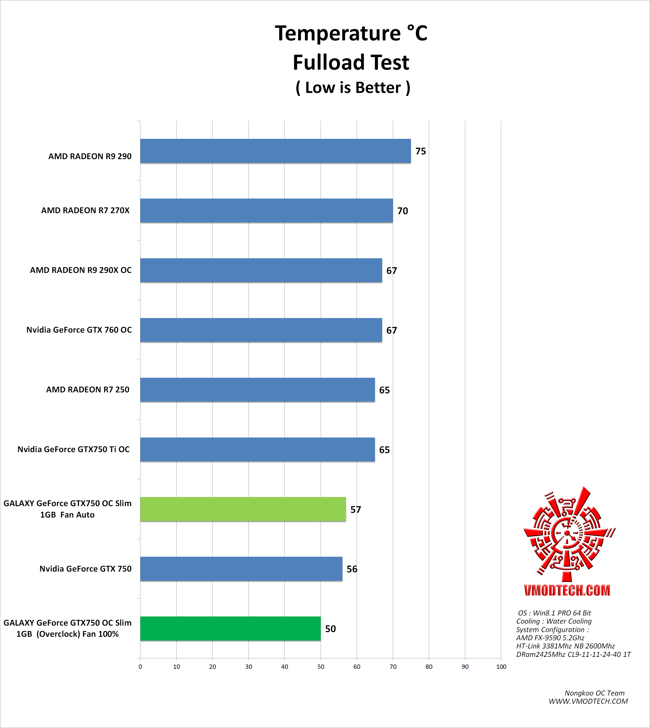 ผ่านกันไปกับ การทดสอบความเสถียรของการ์ดจอแบบนิ่งๆใช้งานกันได้จริงครับสำหรับชุดทดสอบ Furmark ที่กดกันแบบเต็มๆ โดยอุณหภูมิในสถานะเดิมๆฟูลโหลดอยู่ที่ 57องศาฯ ส่วนสถานะโอเวอร์คล๊อกฟูลโหลดอยู่ที่ 50องศาฯ ส่วนรอบพัดลมทำงานที่ 100เปอร์เซ็นโดยอุณภูมิห้องราวๆ 32-34องศาฯ แบบนี้เรียกได้ว่าเย็นจัดจริงๆครับขนาดเทสในห้องที่ค่อนข้างร้อนแบบนี้ สุดยอดจริงๆสำหรับ GALAXY GeForce GTX750 OC Slim 1GB ในเรื่องเสียงรบกวนนี้ต้องบอกเลยว่าเงียบจัดมากๆครับ แม้จะเปิดรอบพัดลมเต็มหนึ่งร้อยเปอร์เซ็นก็ตามครับ