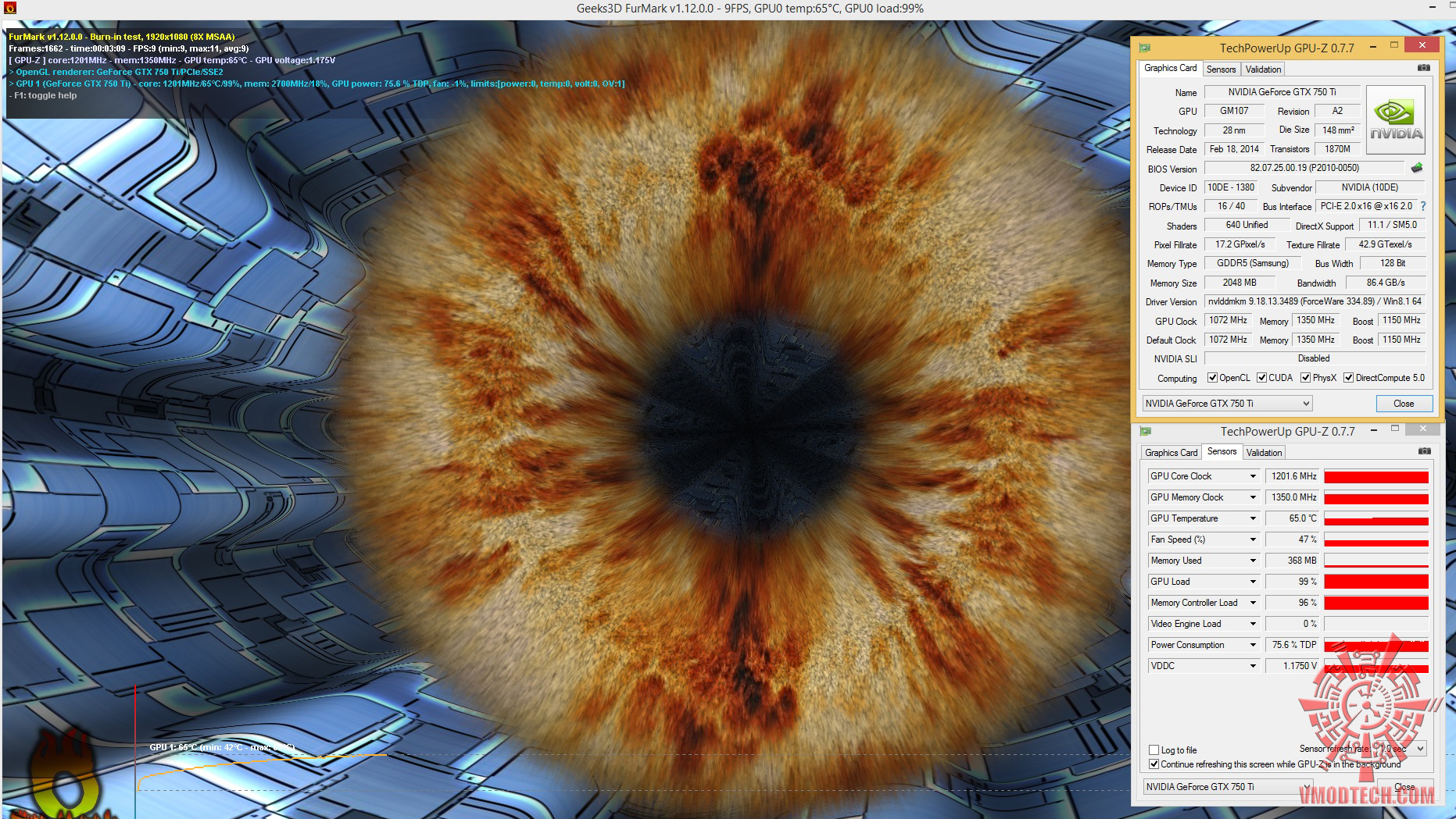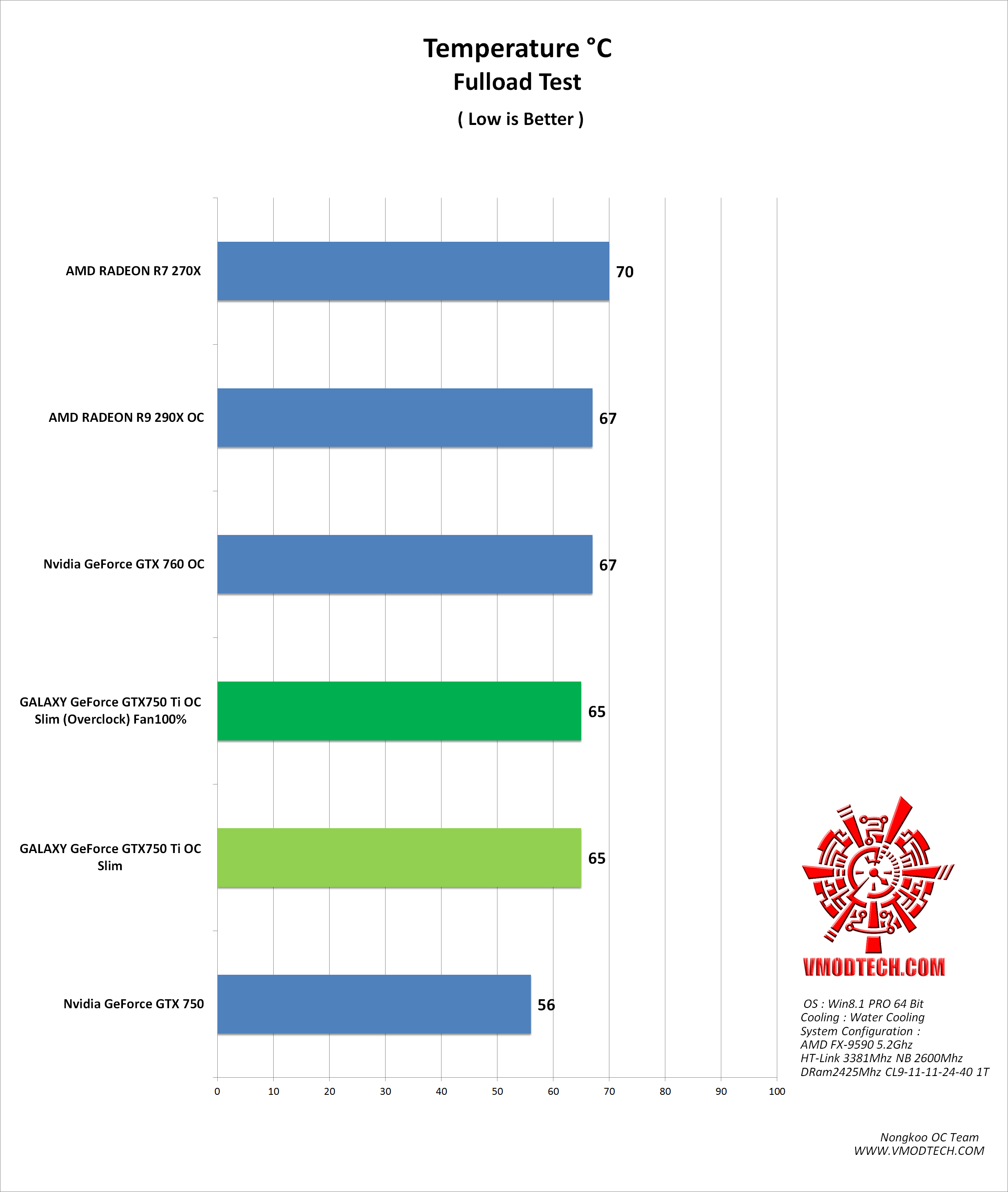 ผ่านกันไป แบบ นิ่งๆใช้งานกันได้จริงครับสำหรับชุดทดสอบ Furmark ที่กดกันแบบเต็มๆ โดยอุณหภูมิในสถานะเดิมๆฟูลโหลดอยู่ที่ 65องศาฯ ส่วนสถานะโอเวอร์คล๊อกฟูลโหลดอยู่ที่ 65องศาฯ เช่นกันครับ ถือว่าเย็นมากครับกับชุดเทส Furmark ที่กดกันแบบเต็มๆกับความร้อนแค่นี้สุดยอดจริงๆ กับGALAXY GeForce GTX750 Ti OC Slim ที่แม้จะลากกันเต็มๆก็ใช้งานได้นิ่งๆ โดยอุณภูมิห้องราวๆ32-34องศาฯ ที่เข้าสู่หน้าร้อนของเดือนมีนาคม น่าประทับใจมากครับกับผลทดสอบเรื่องอุณหภูมิกับฮีตซิงค์ที่ขนาดเล็กๆแบบนี้ ใช้งานกันได้จริงๆในสภาพแวดล้อมที่ร้อนของฤดู