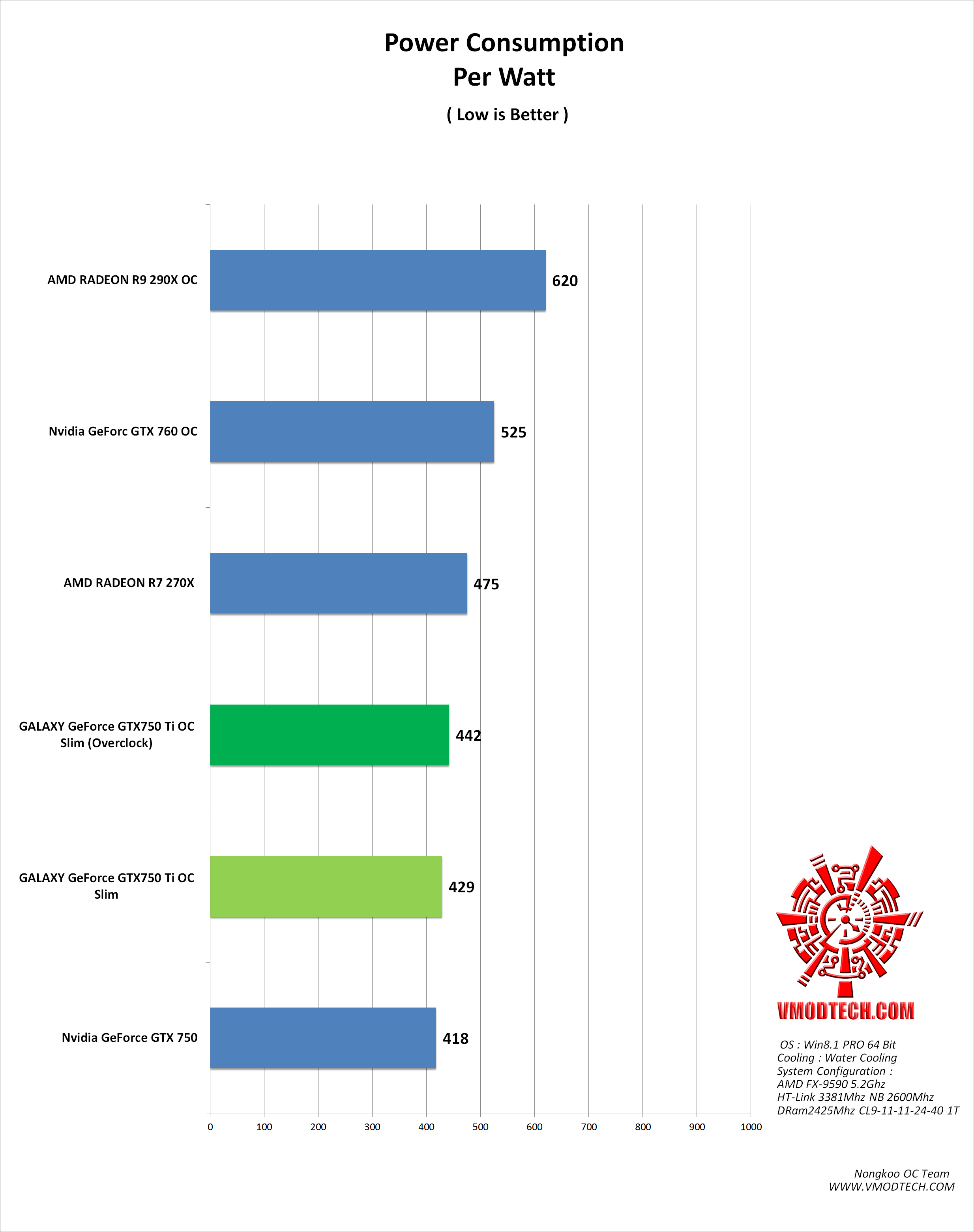 อัตราการ บริโภคไฟก็ถือว่าประหยัดมากๆในสถานะเดิมๆกินไฟที่ 429วัตต์ ส่วนสถานะโอเวอร์คล๊อกเพิ่มไฟแม้จะอัดกันแบบเต็มๆแล้วก็ตามกินไฟแค่ 442วัตต์ เท่านั้น ในการเทส Furmark โดยระบบที่ใช้ทดสอบด้วยซีพียู FX-9590 ที่มีค่า TDP 220W และยังอัดกันไปที่ 5.2Ghz อัตราการบริโภคไฟกินแค่ 442วัตต์เท่านั้นแม้ว่าจะเล่นกับซีพียูที่มีค่า TDP 220W ก็ตามประหยัดสุดๆครับ