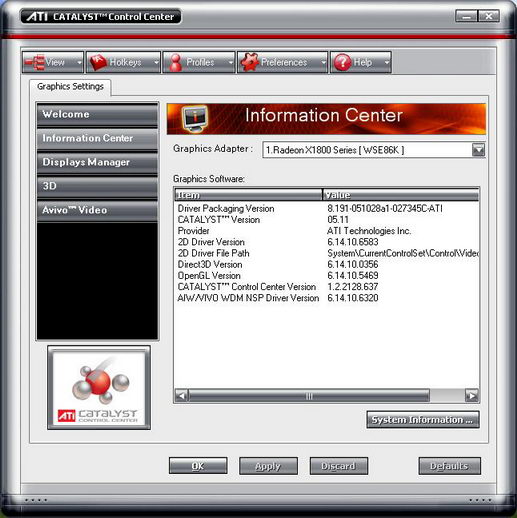 ในการทดสอบคราวนี้ใช้Driver Offical Version 5.11 มาใช้ในการทดสอบนะครับ ซึ่งVersionนี้ก็รู้จักตัวการ์ดX1800XTตัวนี้เป็นอย่างดี