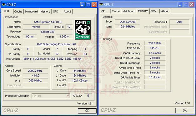 | RAM | ROX PC3200 UTT Set CL 1.5-2-5-2-7-12-2-2-1-2 1T all FSB 512MB X2 |