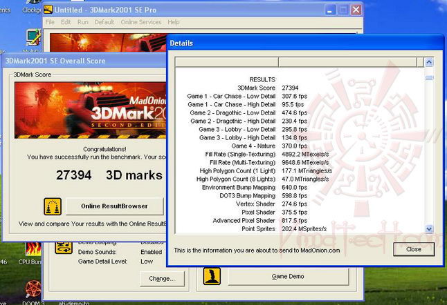 เริ่มกันที่3DMark2001SEกันก่อนนะครับ นี่ขนาดวิ่งที่Defaultทั้งCPUทั้งGraphic Card ยังซัดกันไปที่27,394คะแนน แบบหน้าตาเฉยเลยครับ