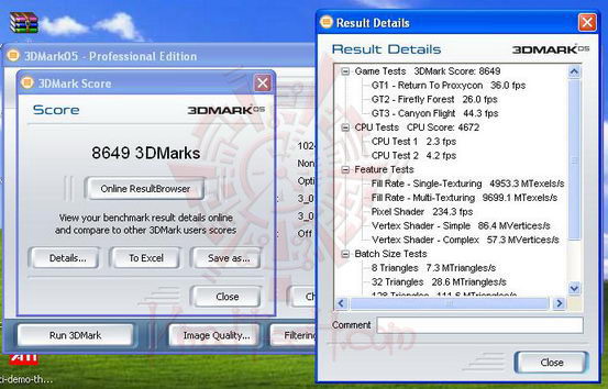 3Dmark05 ก็สามารถทำคะแนนไปหยุดอยู่ที่ 8,649คะแนนกันแบบเดิมๆ