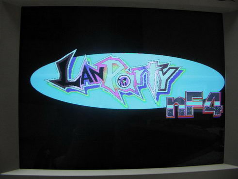 เมื่อเริ่มบูตเครื่องมาก็ทำเอาผมตกใจไปเล็กน้อย เพราะภาพLogoของเมนบอร์ดขณะบูตขึ้นมาตอนแรก เกิดอาการสีเพี้ยนดังรูป แต่พอเข้าหน้าBIOS หรือเข้าวินโดว์สีก็เป็นปรกติตามเดิม เล่นเอาผมใจหายแว๊บ นึกว่าการ์ดท่านOkiจะมาเจ๊งคามือผมทั้งที่ยังไม่เริ่มซะอีก
