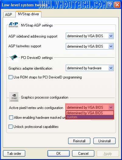 พอเลือกเสร็จ ตรงหัวข้อ Active pixel/vertex units configuration ก็จะถูกActiveขึ้นมาให้เลือกได้ ก็เลือกไปที่ “custom” เลยครับ