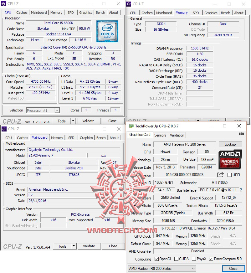 วันนี้ทดสอบที่ความเร็ว 4.7hz บัสแรม 3000Mhz CL16-16-16-36-400 2T 1.35V ตามค่า XMP ตลอดการทดสอบครับ ซึ่งเป็นค่าเดิมๆของตัวแรม ซึ่งท่านสามารถเรียกใช้ค่า XMP นี้ได้เยใน Profile ของเมนบอร์ดครับ และอีกผลทดสอบในการโอเวอร์คล๊อกไปที่ความเร็วบัสแรม 3200Mhz ความเร็วซีพียู 4.7Ghz ในผลทดสอบต่อไป ส่วนกราฟฟิกการ์ดวันนี้เป็น AMD RADEON R9 290 ใช้ร่วมทดสอบในวันนี้