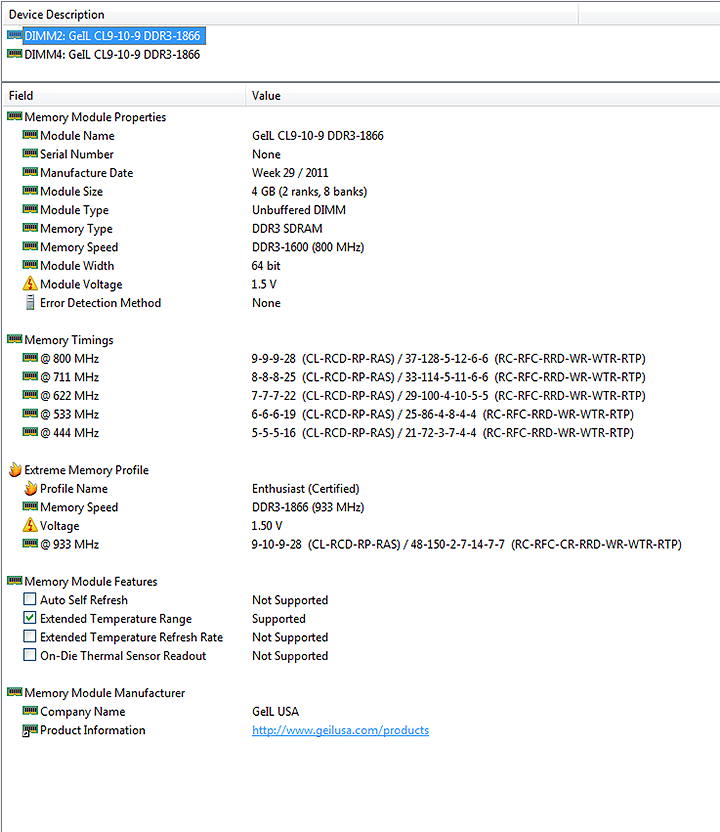 GEIL EVO CORSA PC3 14900 1866 MHz
