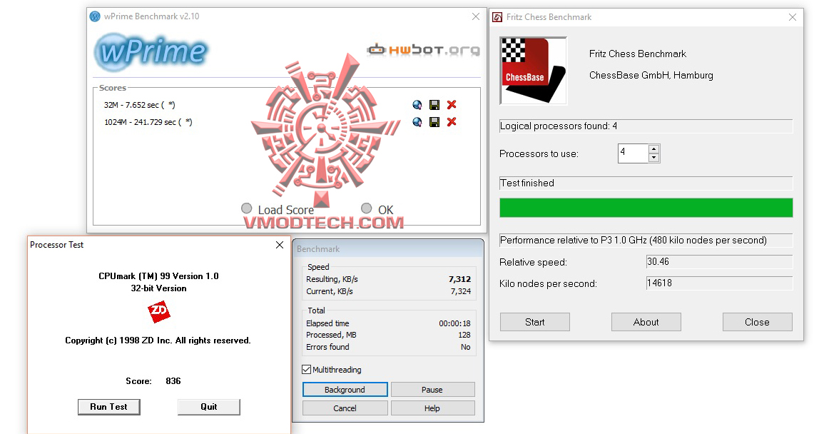 Fritz Chess Benchmark , Winrar , wPrime Benchmark v2.09