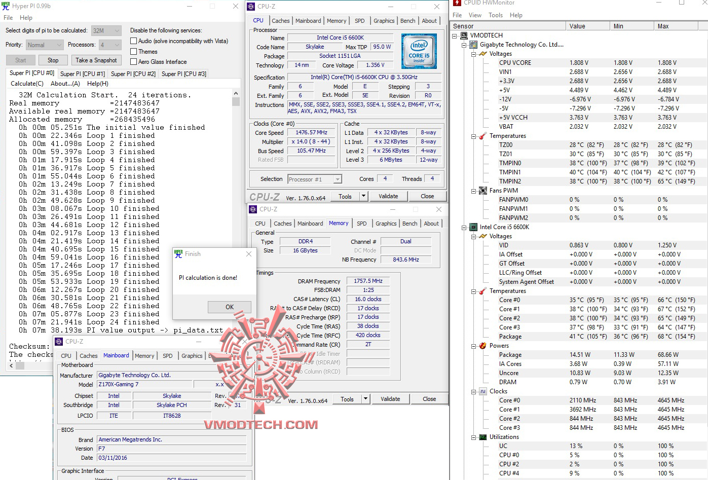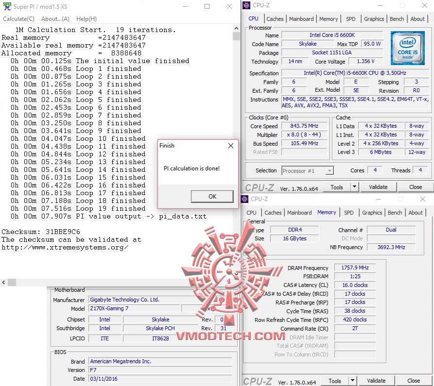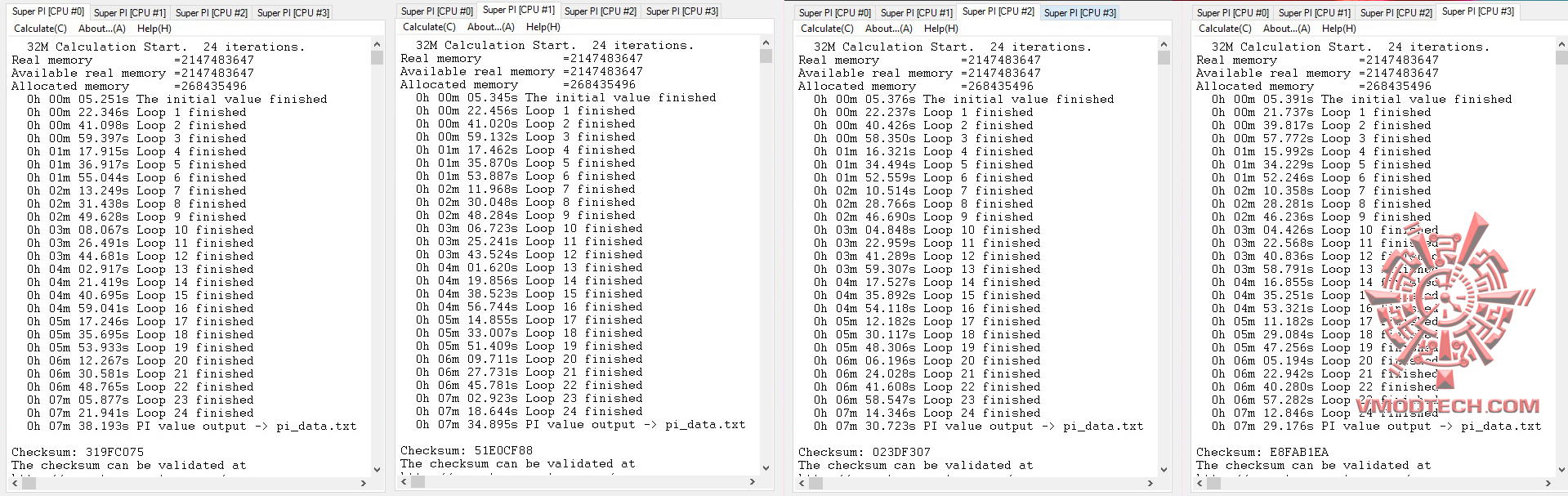 SuperPI1MB จบไปที่ 7.907นาที , 32MB จบไป6นาที 50.787วินาที ส่วน HyperPI 32MB ก็ผ่านหมดครับอยู่ที่ 7วินาทีต้นๆ แรงดีเยี่ยมใช้งานได้จริงกับบัส 3516Mhz ครับ