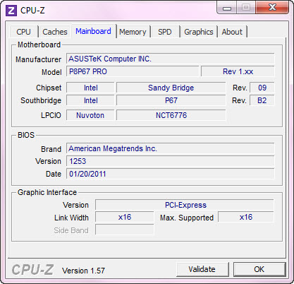 | .Motherboard | ..ASUS P8P67 Pro |