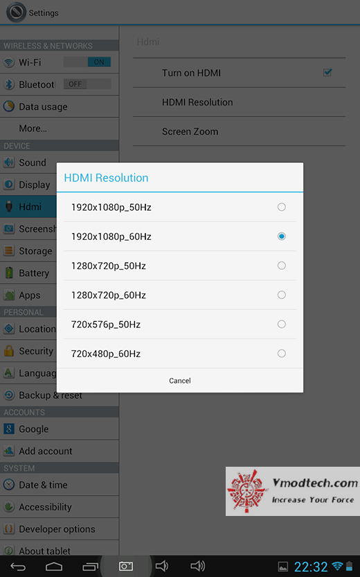 ผมลองต่อสาย Mini HDMI เป็น HDMI เข้ากับจอ LCD TV แบบ FullHD ดูครับ ตัว GIADA Tablet PC T730 นั้นสามารถปล่อย 1920 x 1080P ได้สบายมาก