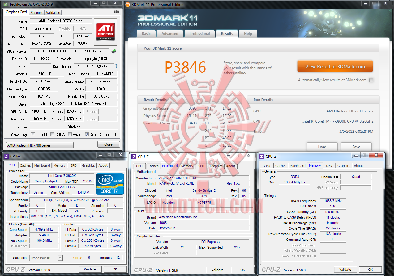 สำหรับคะแนนของ 3DMark 11 ที่ Default นั้น ได้มากกว่าตอนที่ overclock ไปร้อยกว่าคะแนนครับ นั่นอาจจะเป็นเพราะว่าตัวการ์ดนั้นได้ถูกรีดเค้นประสิทธิภาพมาเป็นที่เรียบร้อยแล้วนั่นเอง