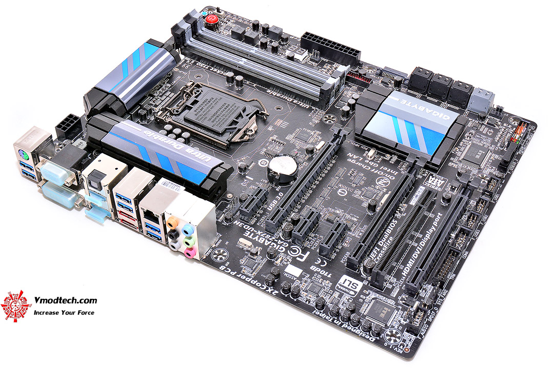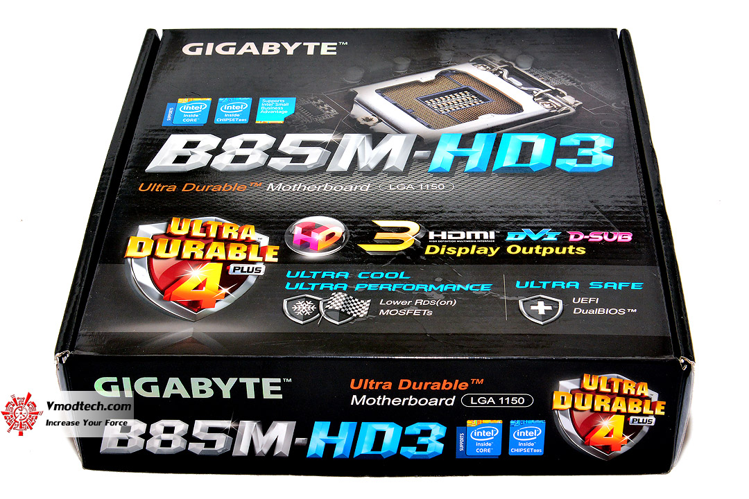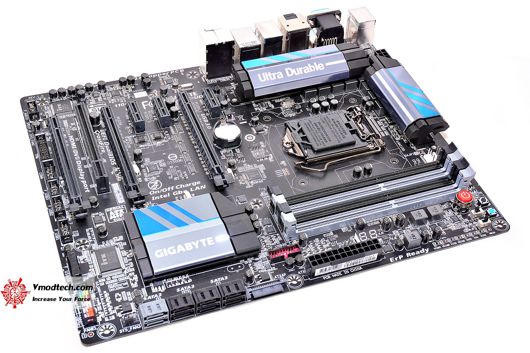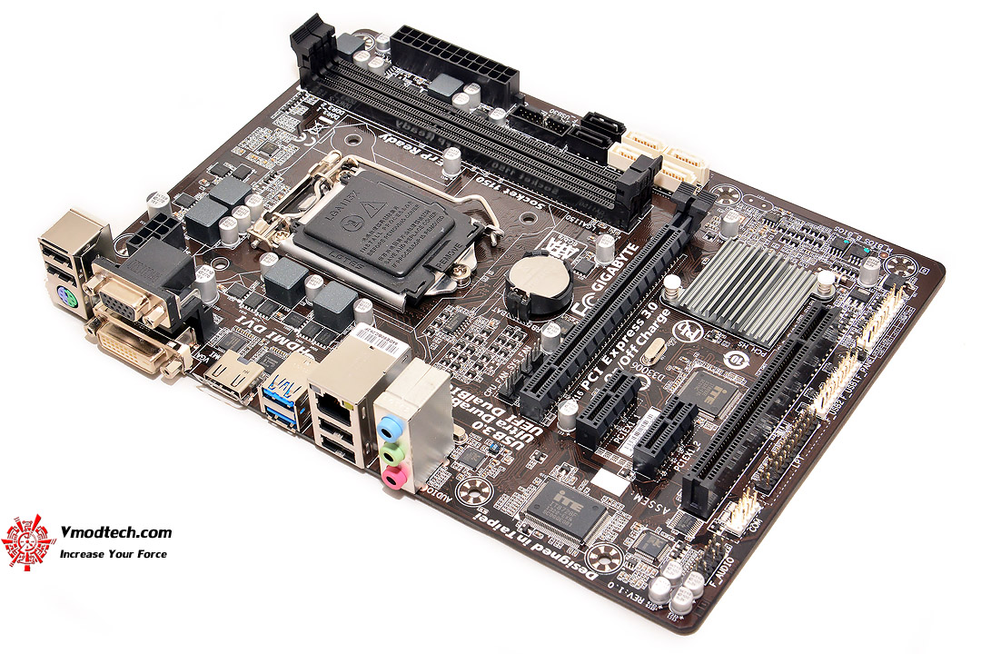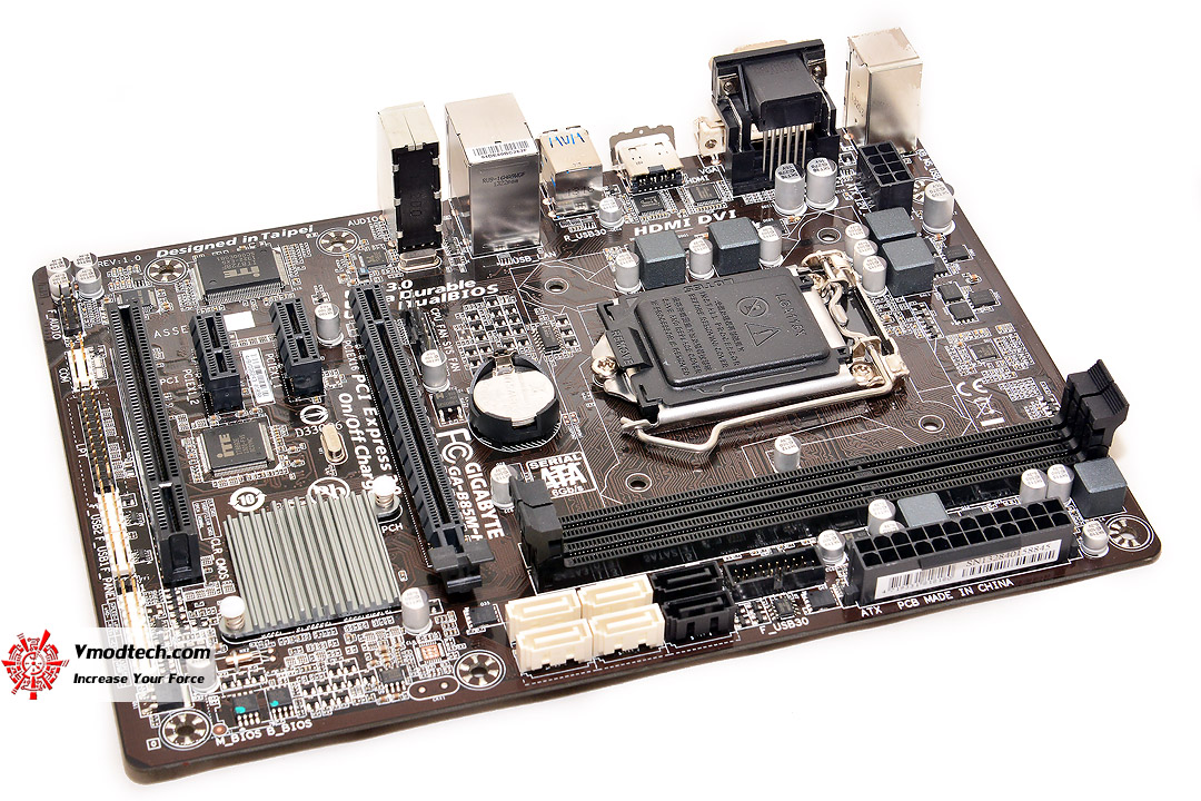 หน้าตาของมาเธอร์บอร์ดรุ่นนี้ จะออกแนวเข้มขรึมน้ำตาลดำ ตามคอนเซปต์ของบอร์ดรุ่นประหยัดจาก GIGABYTE ครับ