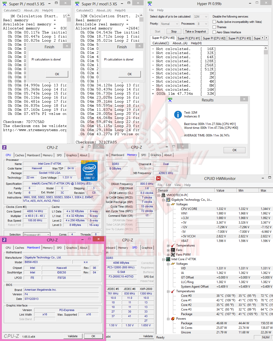 SuperPI 1M 1Thread, 32M 1Thread & 32M 8Threads