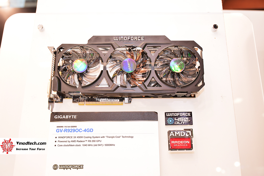 มาชมมุมการ์ดจอกันบ้างครับ โดยทาง Gigabyte จะเน้นมากในรุ่น Windforce 3X Cooling ครับ เดี๋ยวเราไปชมกันคร่าวๆครับกับการ์ดจอขอสองค่ายระหว่างทาง Nvidia และ AMD ว่าเมื่ออยู่ในแบรนด์ของ Gigabyte Windforce แล้วนั้นจะสวยงามกันขนาดไหน