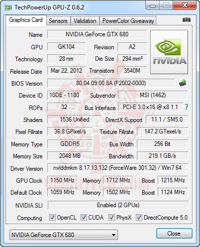 จัด NVIDIA GeForce GTX 680 ในรูปแบบ SLI และจัดความเร็วไปที่ 1150/1203-1215Turbo/6,848MHz กันเลยครับ