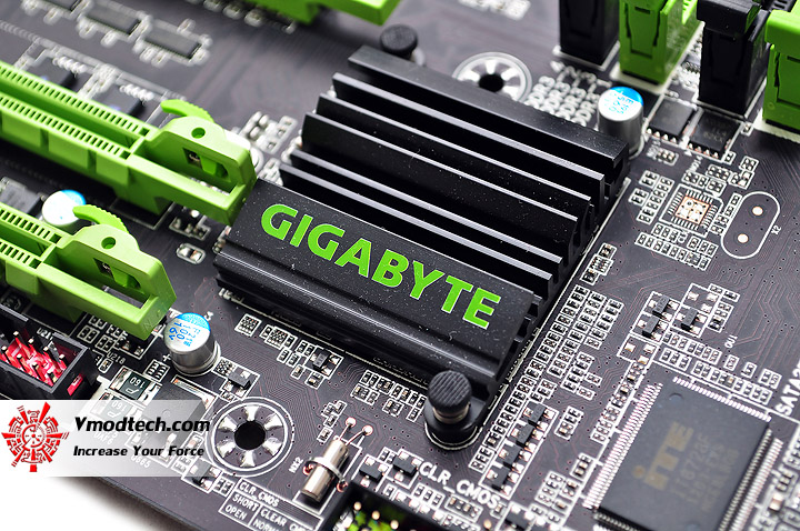 หน้าตาชุดระบายความร้อนให้กับตัวชิปเซตที่สวยงามกลมกลืนเป็นหนึ่งเดียวกันกับตัวมาเธอร์บอร์ดเป็นอย่างดีครับ