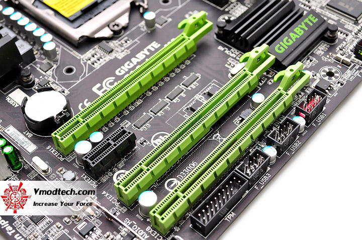 …PCI-E 3.0 X16 Slot ที่มาพร้อมกัน 3 ช่องทาง ที่สนับสนุนการทำงานทั้งในรูปแบบ SLI และ CrossFireX สูงสุดถึง 3 ทาง ตามด้วย PCI-E 2.0 X1 อีก 1ช่องทางครับ
