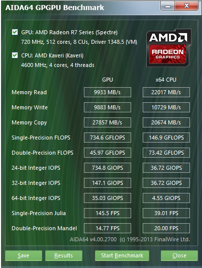 ตัวเทส GPGPU ตัวใหม่ของ AIDA64 ครับ เน้นเทส OpenCL ก็แรงกันไปตามประสิทธิภาพของ APU 6800K ครับ