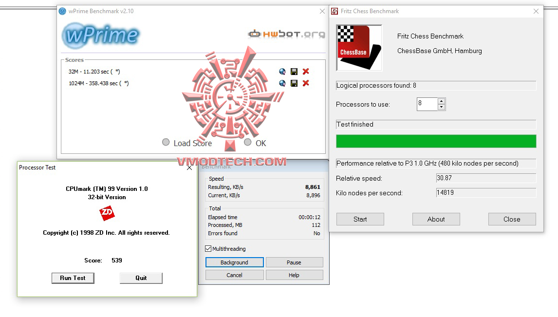 wPrime2.09 , CPUMark99 WINRAR 5.0 & Fritz Chess Benchmark