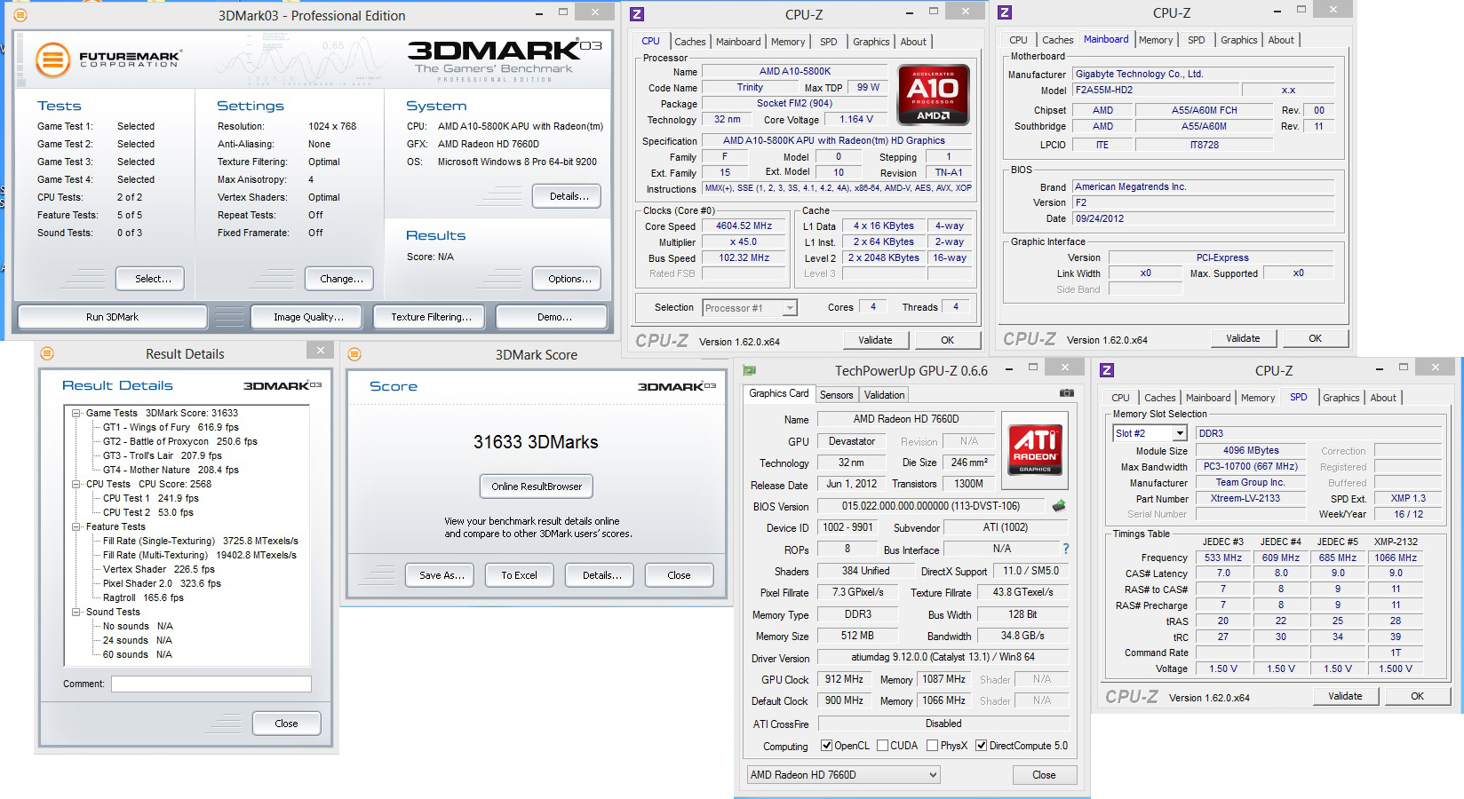 การ์ดจอยังเป็นตัว APU HD7660D ที่อยู่ใน A10-5800K ครับผม แต่ได้โอเวอร์คล๊อกเพิ่มจากเดิมเป็น Core 912Mhz Memory 1087Mhz ครับผม