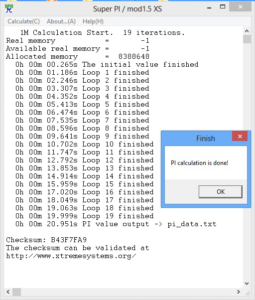 SuperPI1MB จบไปได้ด้วยเวลา 20.951 วินาทีครับ