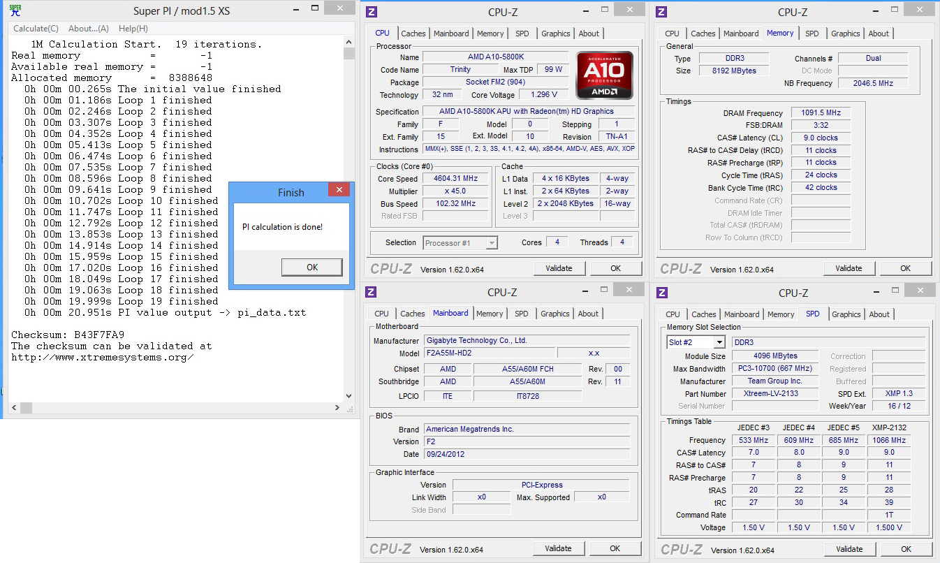 ผ่านไปอย่างมีสเถียรภาพและใช้งานกันได้จริงครับในความเร็ว 4.6Ghz บัสแรม 2182Mhz กับเมนบอร์ดตัวเล็กๆอย่าง GIGABYTE GA-F2A55M-HD2 สุดยอดไปเลยครับ