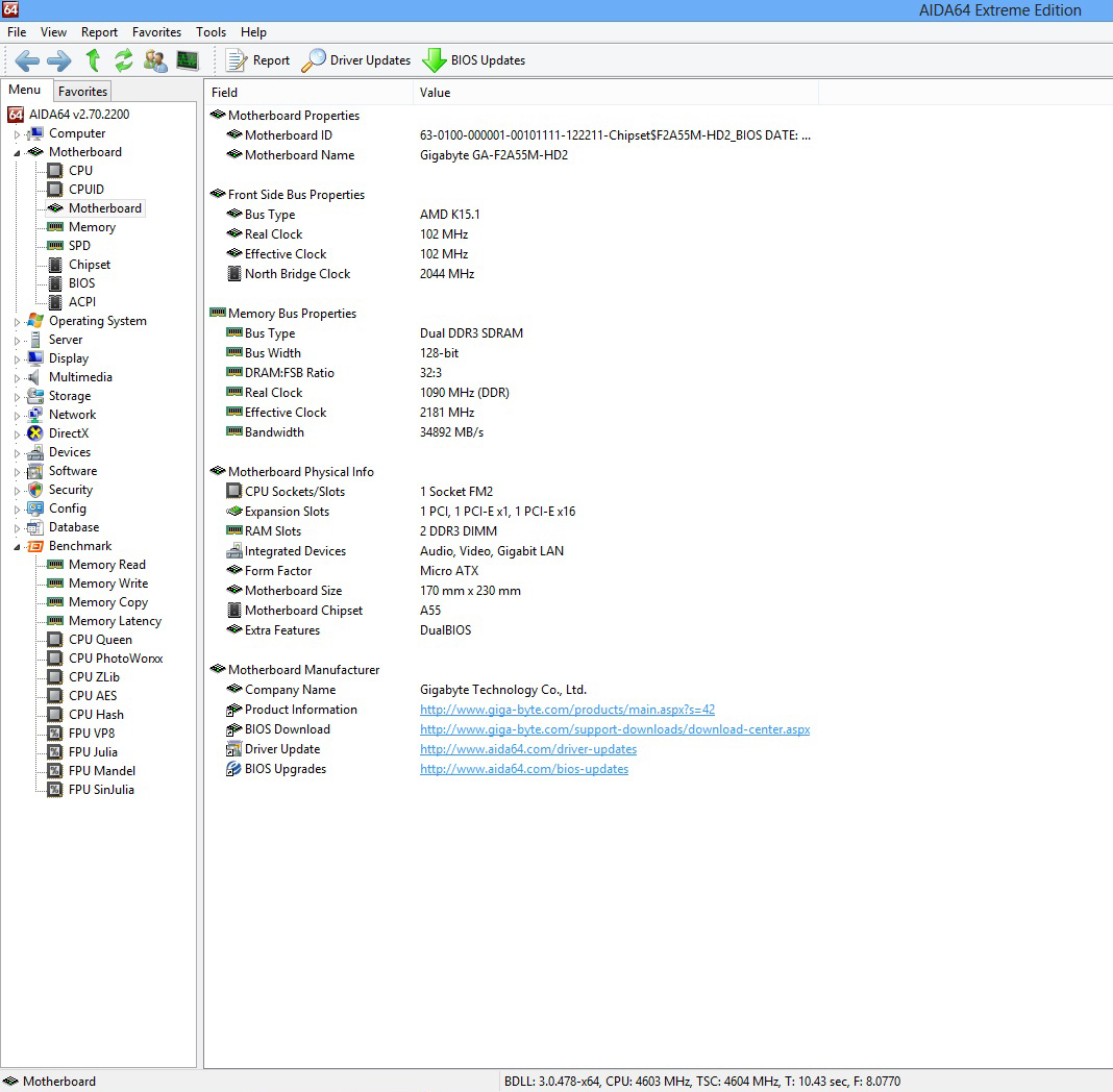 | .Motherboard | ..Gigabyte GA-F2A55M-HD2 |