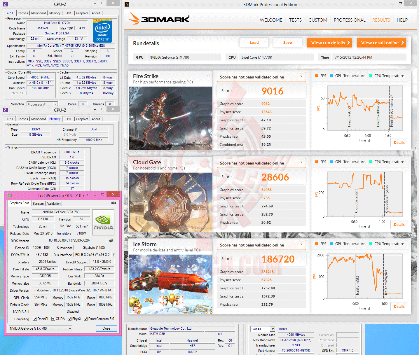 ผลการทดสอบของตระกูล 3DMark ก็แรงกันไปกับพลังของ GIGABYTE WINFORCE 3X OC GTX 780 3GB GDDR5