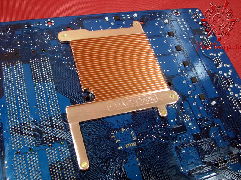 โฉมหน้าเทคโนโลยีแผ่นเย็นเป็นบ้า(CrazyCool) ที่ทางด้านหลังเมนบอร์ดครับ ทองแดงล้วนๆอย่างหนา น่าถอดไปชั่งกิโลขายเป็นอย่างยิ่ง