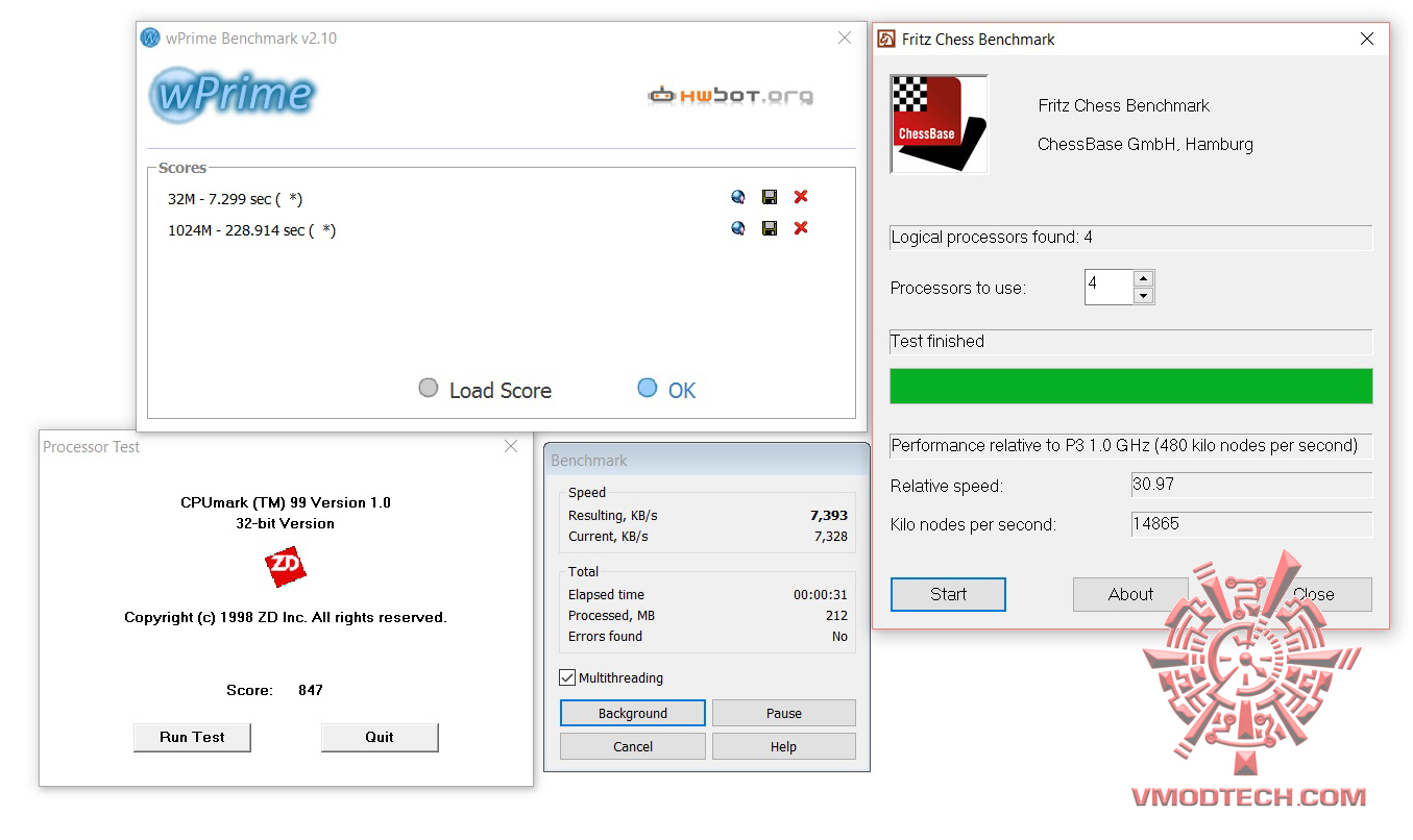 wPrime2.09 , CPUMark99 WINRAR 5.0 & Fritz Chess Benchmark