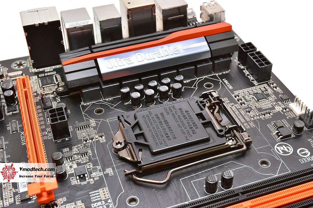 หน้าตาของมาเธอร์บอร์ดรุ่นนี้ จะออกแนวเข้มขรึมดำคาดส้มดุดัน ตามคอนเซปต์บอร์ดรุ่นโอเวอร์คล็อคของ GIGABYTE ครับ