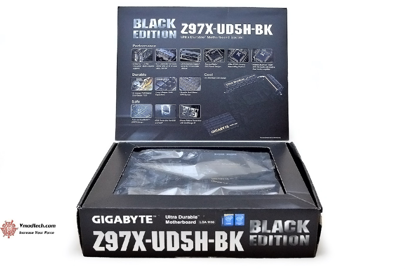 หน้าตาของมาเธอร์บอร์ดรุ่นนี้ จะออกแนวเข้มขรึมดำคาดทองดุดัน ตามคอนเซปต์ใหม่ของบอร์ดในตระกูล Ultra Durable ครับ