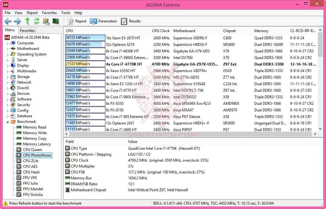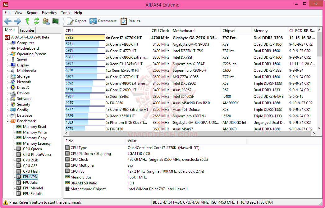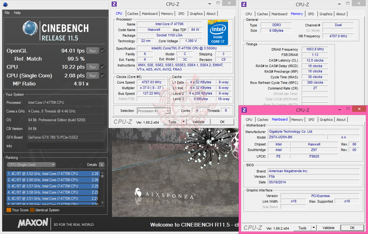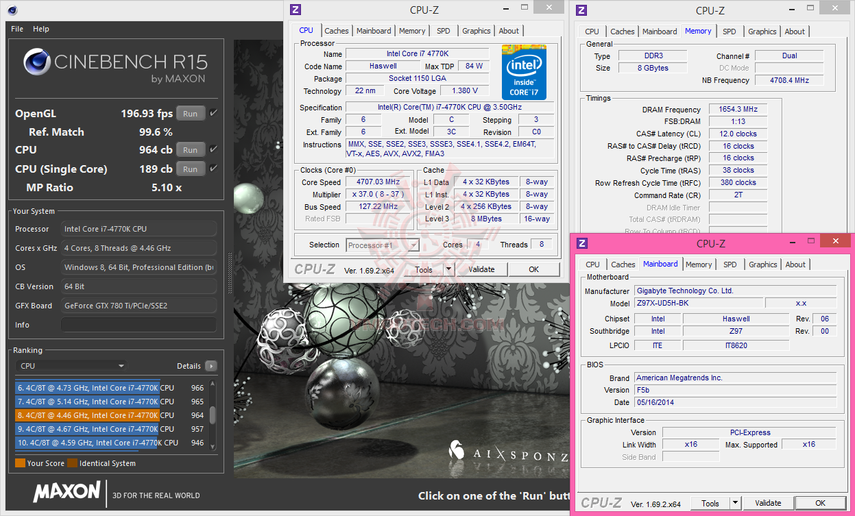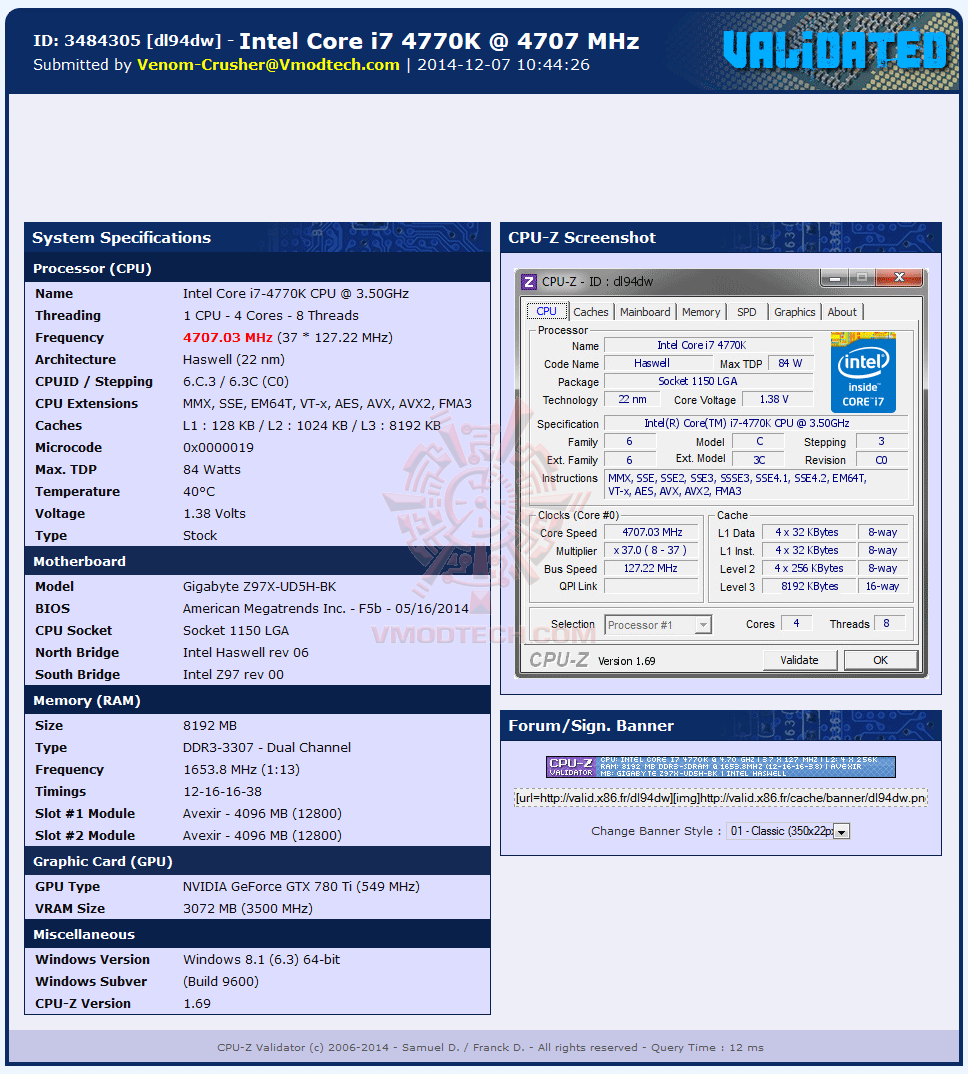 4th Generation Intel® Core™ i7-4770K @ 4,707MHz Bclk 127.22MHz